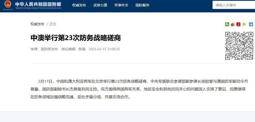 日前,澳大利亚军方高层来华,与中方展开了第23次防务战略磋商。此次代表团由澳大利亚国防军副司令奇普曼率领,随行的还有澳大利亚国防部的副秘书长杰弗里。